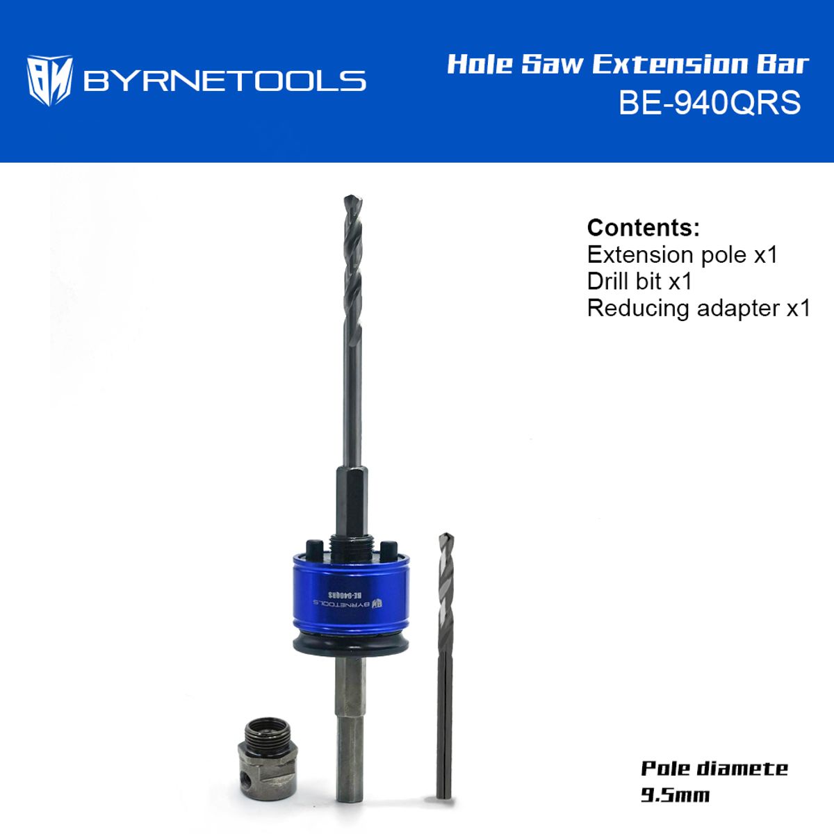- Quick-Eject Hole Saw Extension Rod